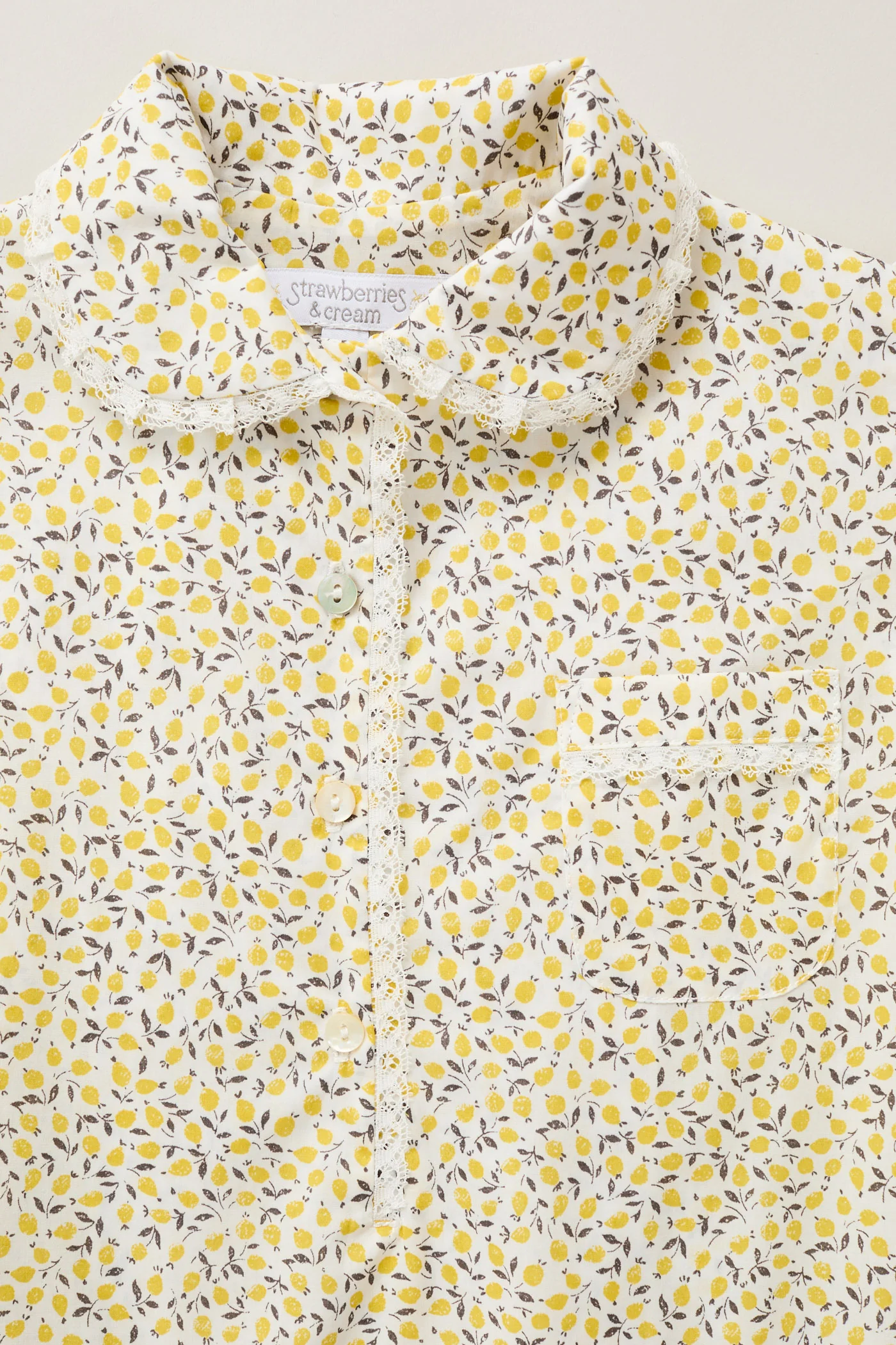 So sweet they should come with a health warning! These classic baby pyjamas in Lemons print are an unignorable invitation to dreamland. Soft cotton Liberty fabric , finished with a tender touch, from the fine lace piping collar, cuff and ankles to the pretty pearl button fastenings that make changing a breeze. Made with passion in London.