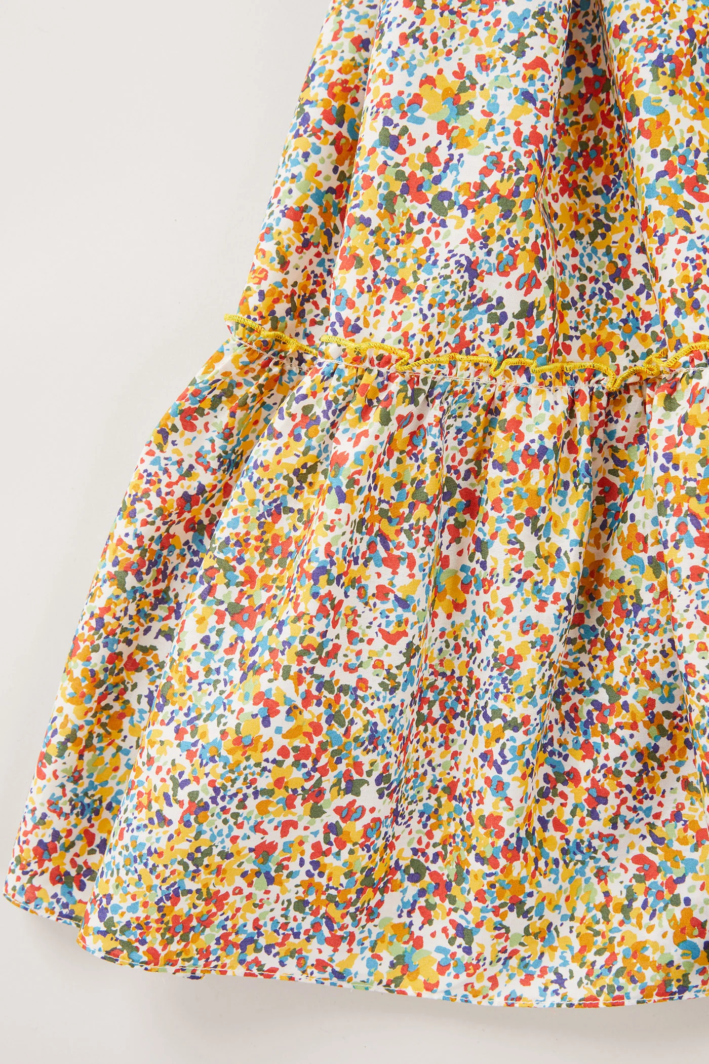 What would a dress be like if it had been painted in all the shades of summer? Red as the first poppies, light blue as the sky with a few playful clouds, and yellow just like the lemons and her favourite toys. That's the Bee Dress: the honeycomb body adjusts to your little gardener's slightest movements and the ruffles give her extra comfort in all her pirouettes. We've added straps knotted in bows that will make them the delight of the cutest girls, and two pockets that will keep all your little girl's treasures in them.