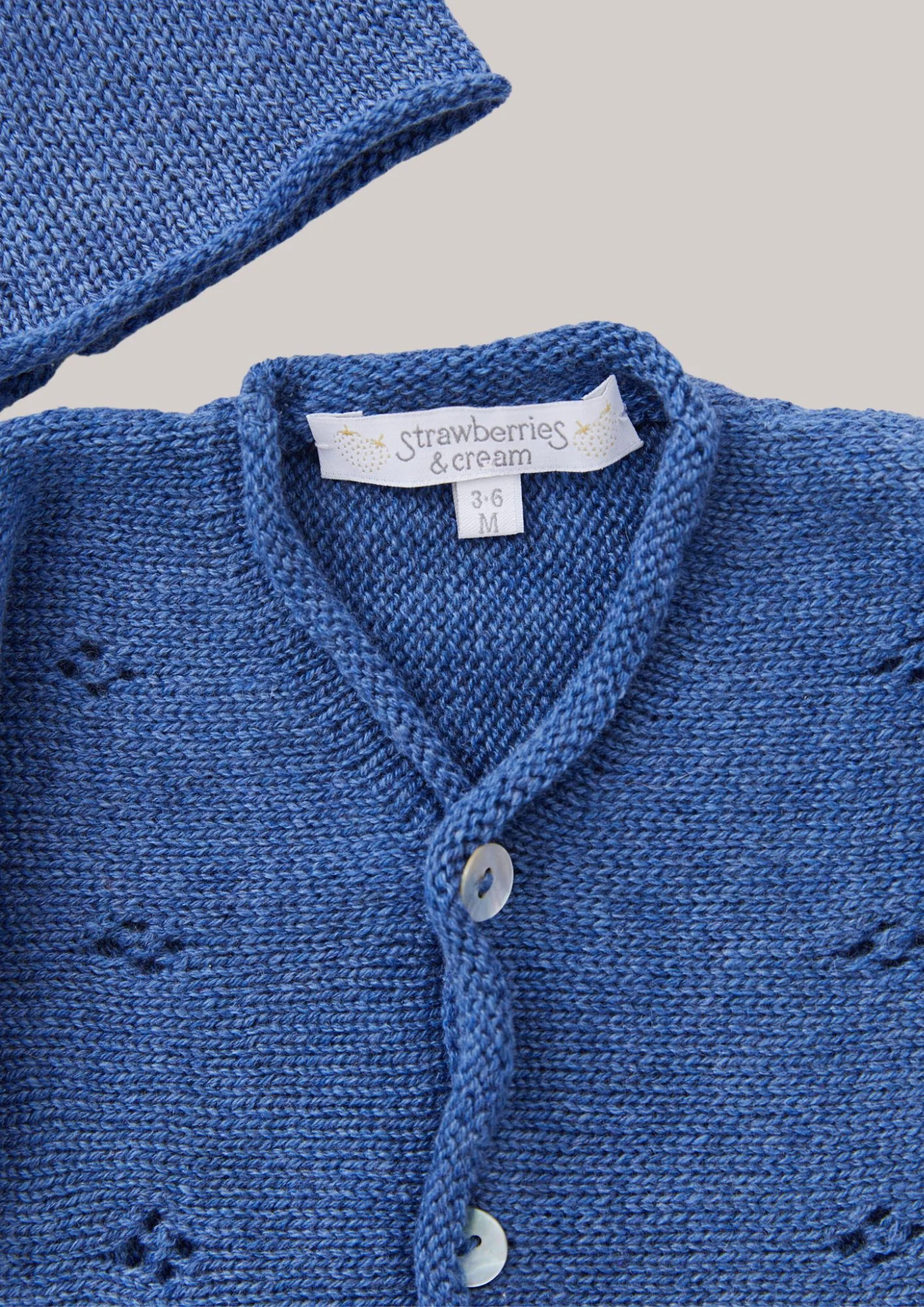 Cashmere Diamond 3 Pieces, cardigan set in Denim Blue