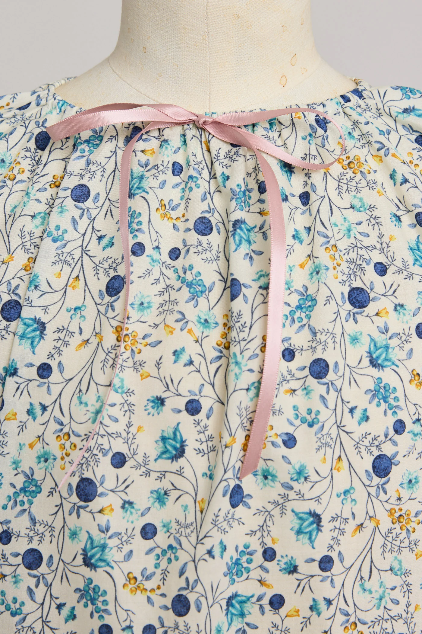 Our Moon Night dress is covered in a delicate print with a sweet ribbon bow on the neckline, cuffs are finished with a lace trim, adding an extra special touch to those pre-bedtime twirls.