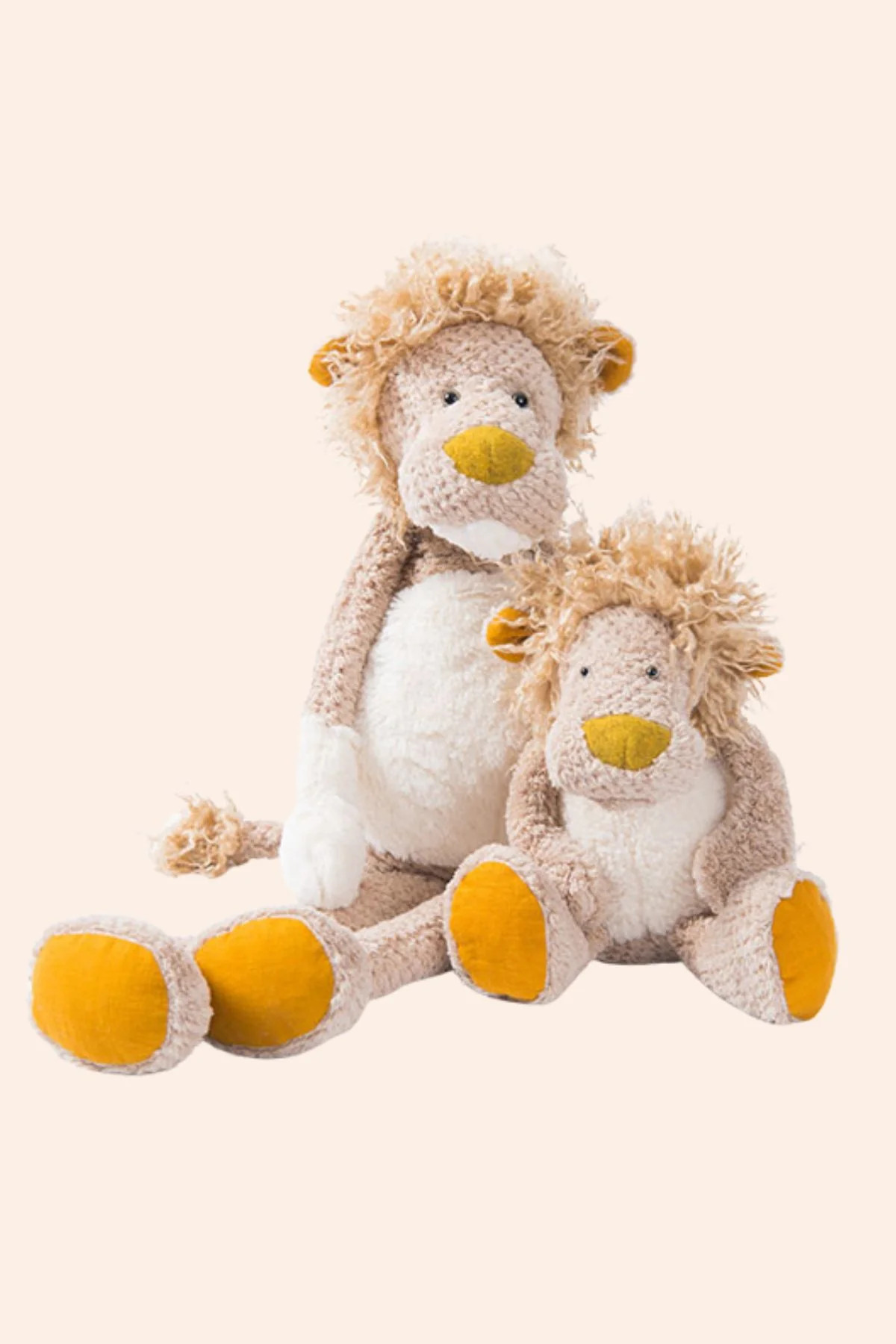 Large beige and mustard lion with a dishevelled mane! Soft cream paws and belly. This king of the animals is ready to watch over his friends!.