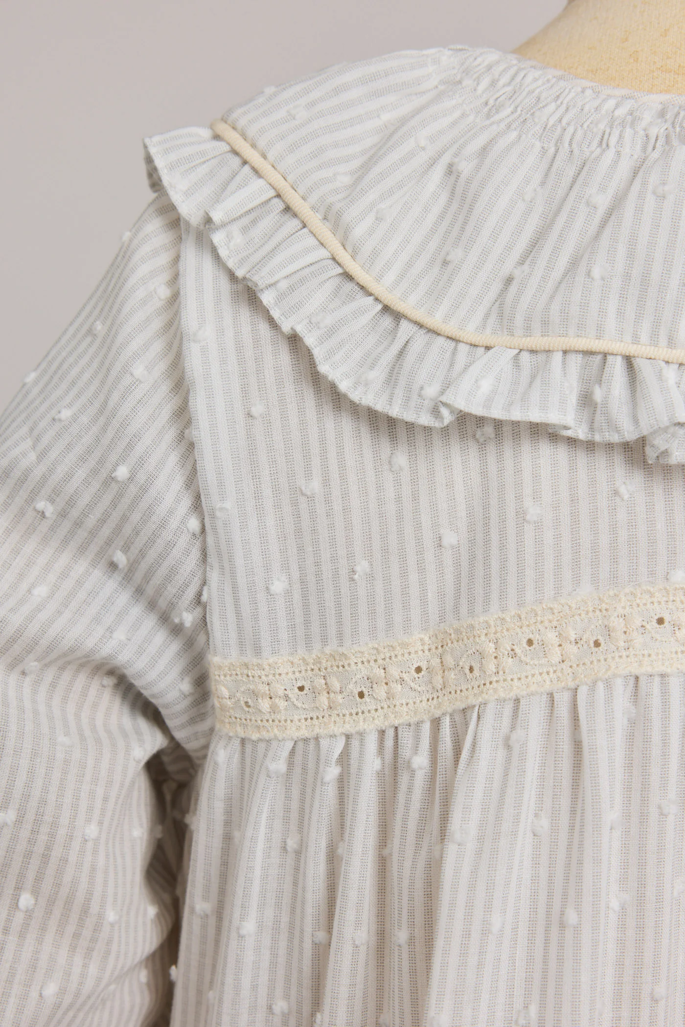 A well pleated Peter Pan collar sits beautifully around the neckline as well as detail to the sleeves. Balancing between a sweet and sour sugary hit and beautiful boho frills.